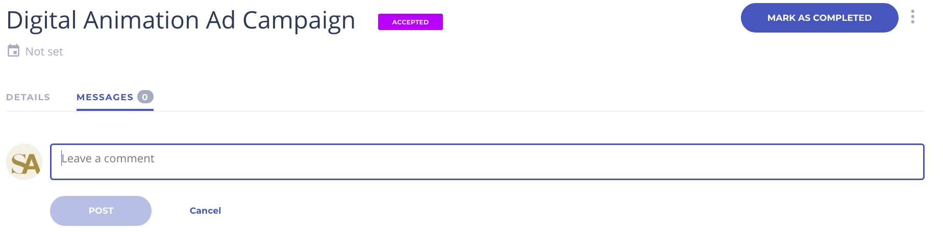 Your client may also send you a message directly in a task, for communications pertaining to the task assignment.