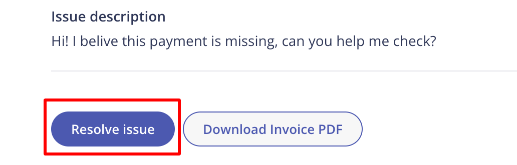 The "Report Issue" button on invoices allows freelancers to flag any invoices for issues, such as funds not yet received or incorrect rates used. Worksuite will support the former, while letting you handle the latter as you see fit.